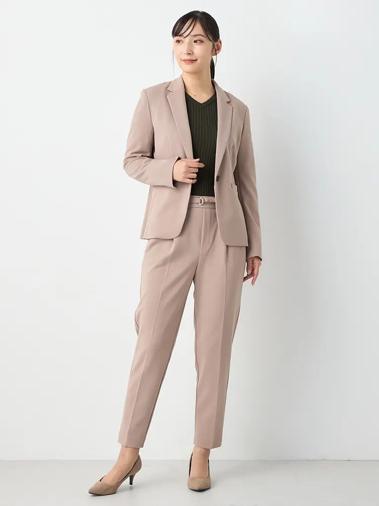 【即納】【パンツスーツ上下セット】ハイストレッチカラーレスジャケットパンツセット【WEB限定】秋冬【レディース】
