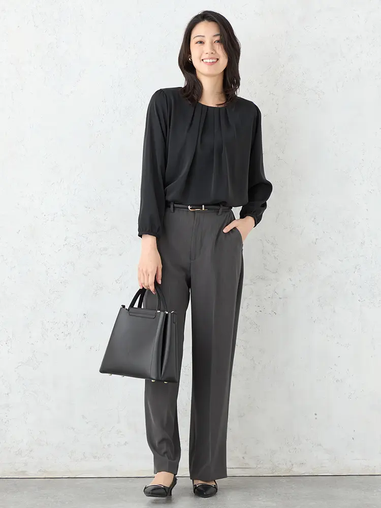 オンオフ問わず活躍する上品なワイドパンツ。