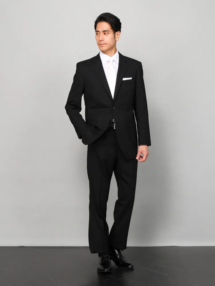 [礼服]【WEB限定】フォーマル2つボタン上下ウォッシャブルウエストアジャスター仕様黒無地通年