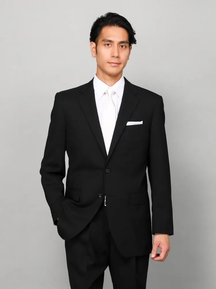 [礼服]【ワンタック】フォーマル2つボタンサマーフォーマルウール混黒無地チェスターバリー春夏