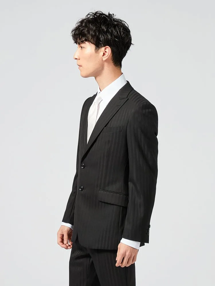切り込みが1本のセンターベントデザインです。細身でスッキリとしたシルエットが特徴で、快適な着心地を提供します