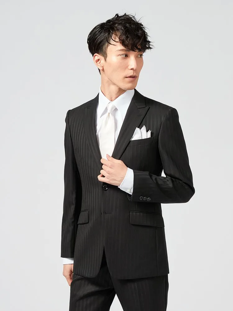 上品な光沢感のある生地に、さりげないシャドウストライプ柄でおしゃれ心をプラスしました。