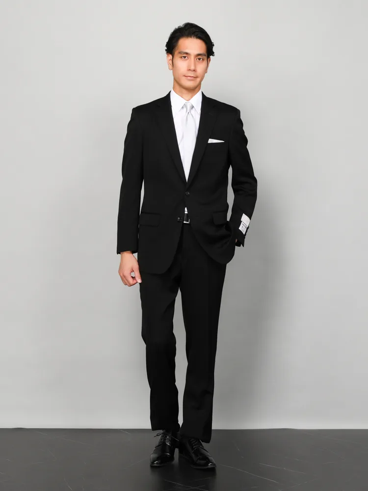 [礼服]【WEB限定】フォーマル2つボタン上下ウォッシャブルウエストアジャスター仕様黒無地通年