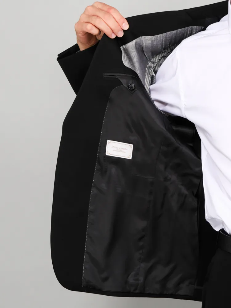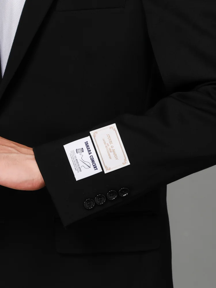 [礼服]【ウエストアジャスター仕様】フォーマル 2つボタン ウール混 黒無地 STOVEL&MASON 通年【定番】