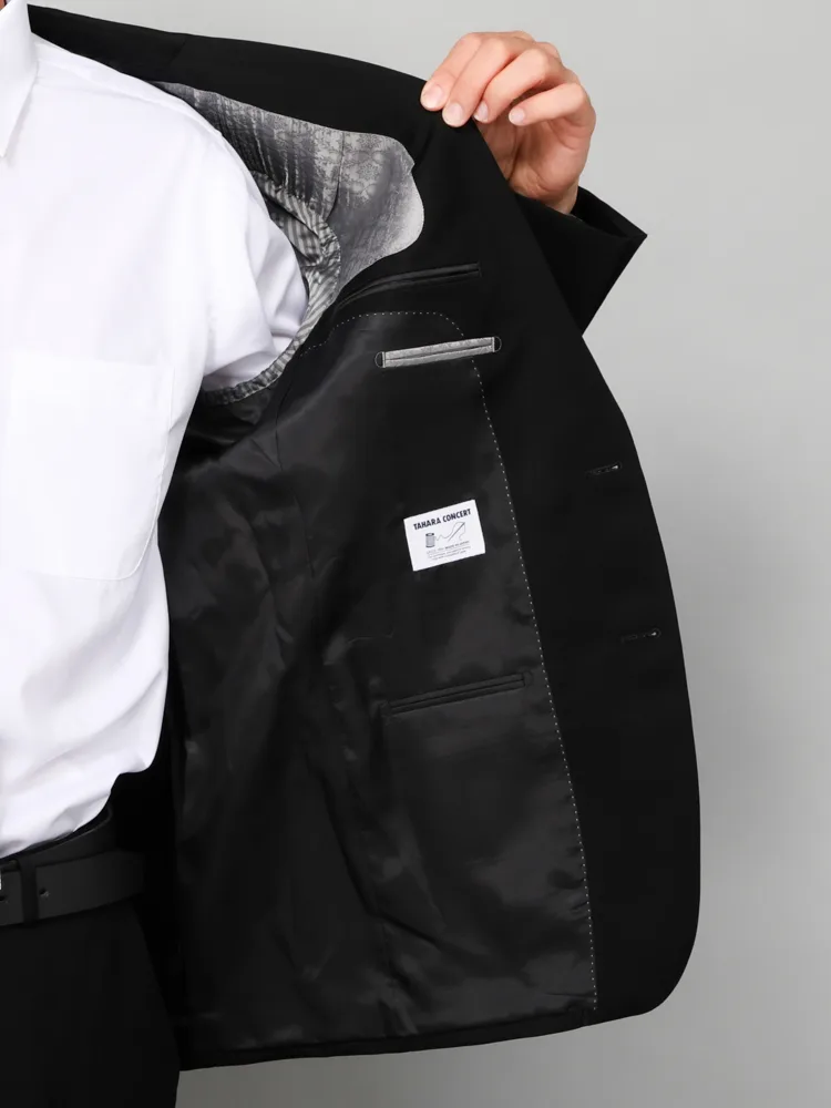 [礼服]【ウエストアジャスター仕様】2つボタンサマーフォーマルワンタック黒無地カンサイ・ヤマモト春夏【定番】
