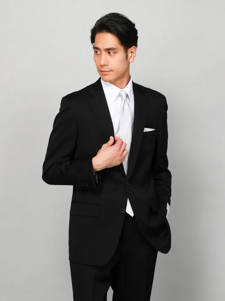 [礼服]【ウエストアジャスター仕様】フォーマル2つボタンウール混素材ブラック無地nero通年