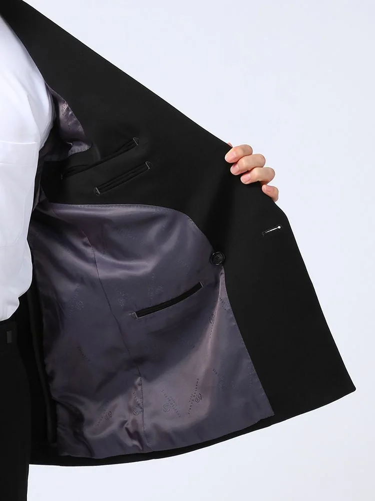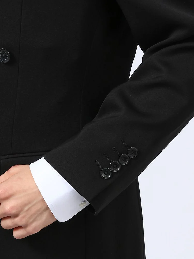 [礼服]【ウエストアジャスター仕様】フォーマル2つボタンウール混黒無地カンサイ・ヤマモト通年【定番】
