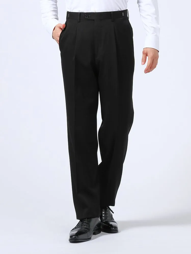 [礼服]【ウエストアジャスター仕様】フォーマル2つボタンワンタック黒無地カンサイ・ヤマモト通年【定番】