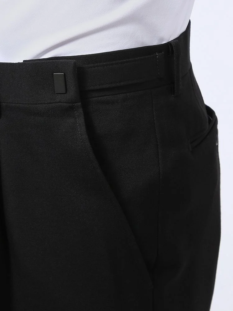 [礼服]【ウエストアジャスター仕様】フォーマル2つボタンワンタック黒無地チェスターバリー通年