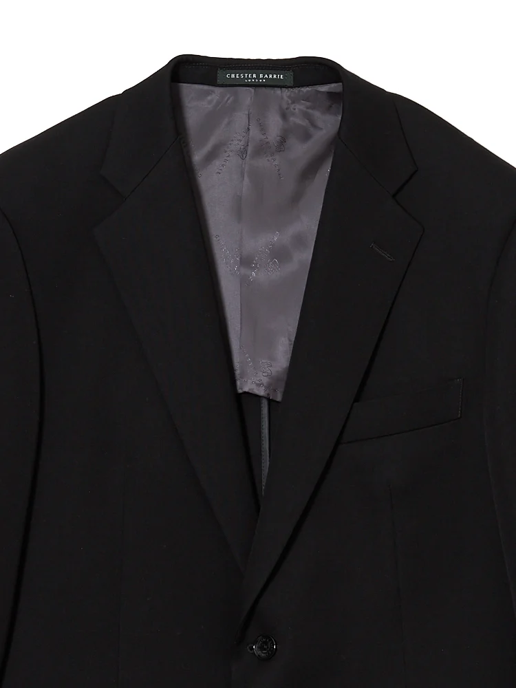こだわりの伝統服作りの良さと、時代の流れを巧みにとらえたファクトリーブランド「チェスターバリー」のフォーマルスーツ。専門店だからこそできるワンランク上の品格と品質を提供する、プレミアムラインです。2ボタンのベーシックなシングルデザインとウールベースのしなやかな風合いで、洗練されたスタイルを叶えます。ジャケットは胸板の厚みを綺麗に見せるバルカポケットや、型崩れを防いでくれるお台場仕立てで高級感をアップ。右側のフラップポケット内とジャケット内側の左下部には、スマートフォンが収まるポケットを配置。袱紗や席次表といった長さのあるアイテムを収納できるポケットも備えています。スッキリとしたシルエットのワンタックパンツは、ウエスト調整ワンタッチ機能付きで体型の変化にも対応。頻繁に買い替えをしなくて済むので、経済的です。さらにジャケットには脇当て、パンツには股ズレ防止のシックや肌滑りを良くするひざ裏が配されており、着用感もいっそう快適に。フォーマルの場でもストレスを感じることなく着用できる、ハイエンドな1着です。