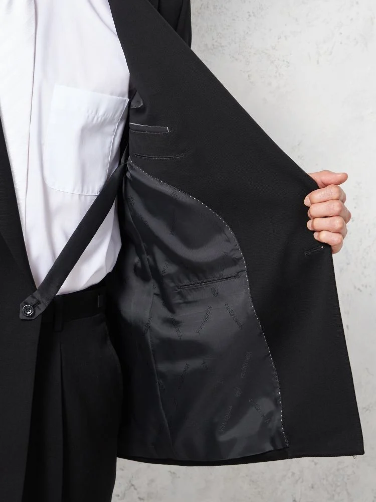 [礼服]【WEB限定】フォーマル2つボタン上下ウォッシャブルウエストアジャスター仕様黒無地通年
