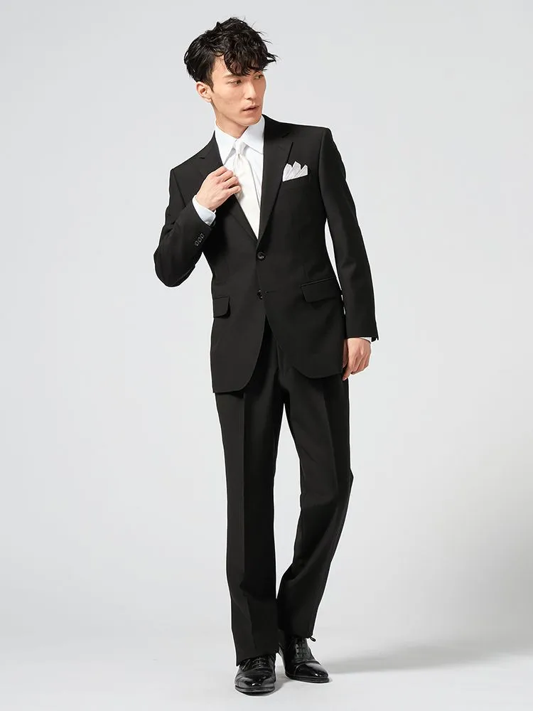 [礼服]【WEB限定】フォーマル2つボタン上下ウォッシャブルウエストアジャスター仕様黒無地通年