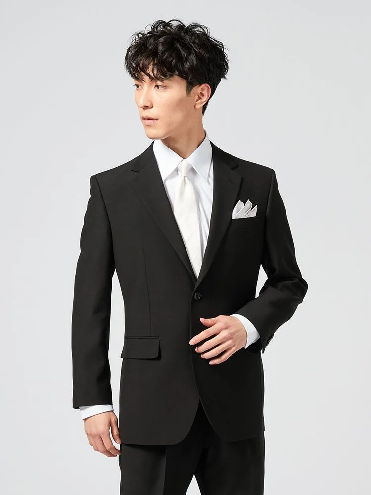 [礼服]【WEB限定】フォーマル2つボタン上下ウォッシャブルウエストアジャスター仕様黒無地通年