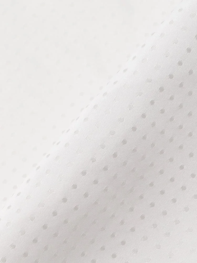 リュクスな光沢感と少し落ち着きのあるグレイがかったホワイトで、ダークな色味のスーツとも好相性です。