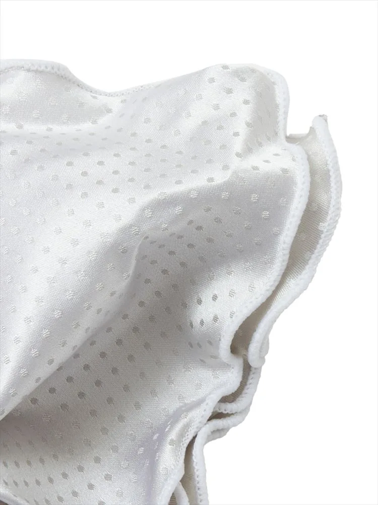 "大人の礼装にクラス感を与えるドット柄のポケットチーフです。