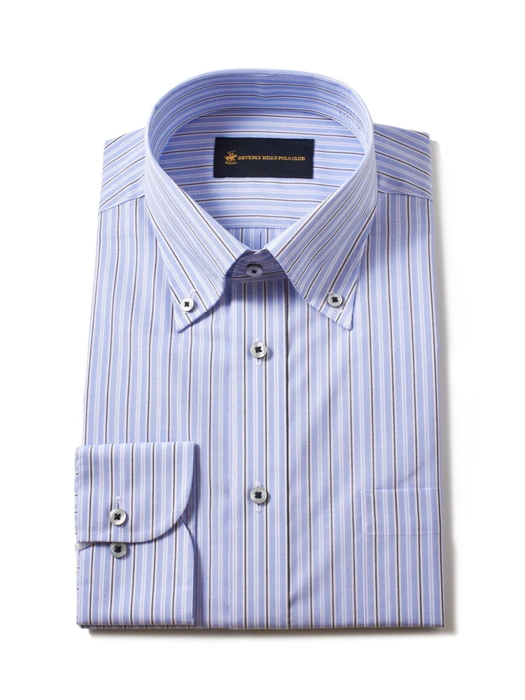 【形態安定】長袖ワイシャツボタンダウントラッドスタイルストライプビバリーヒルズポロクラブ通年