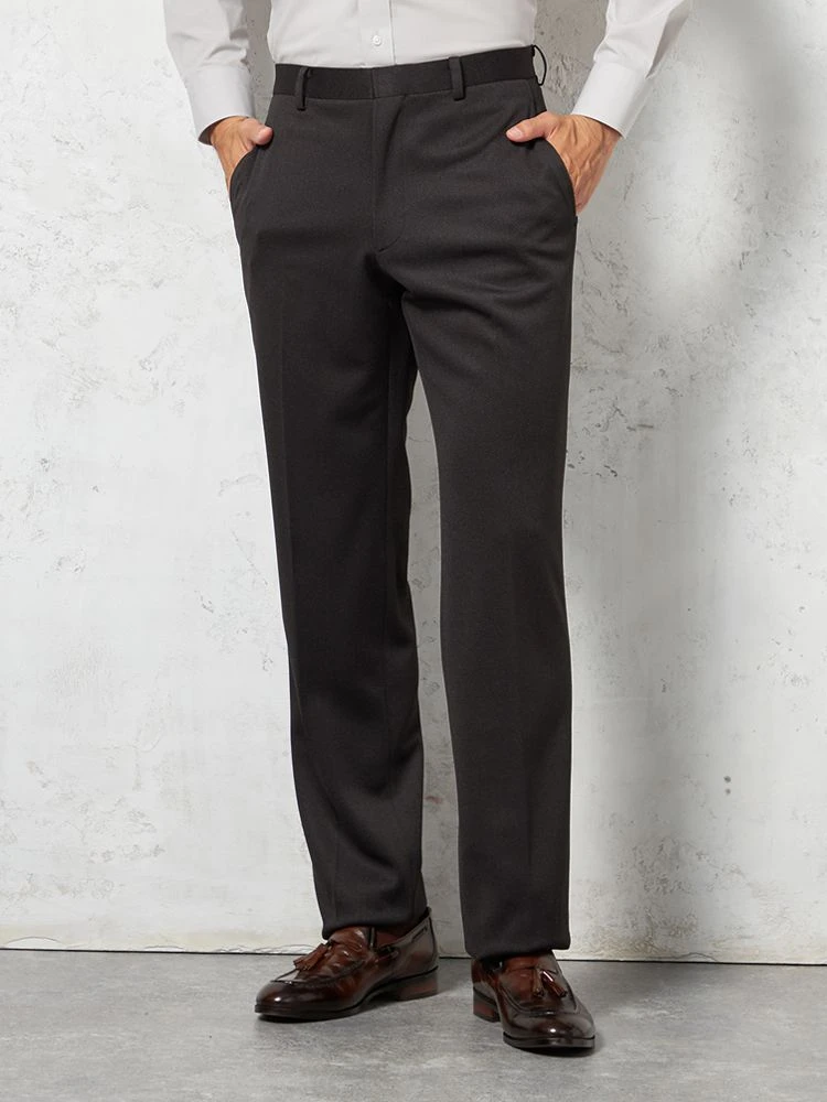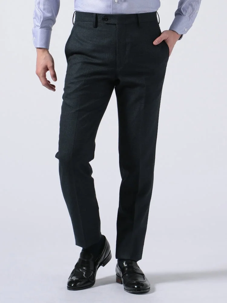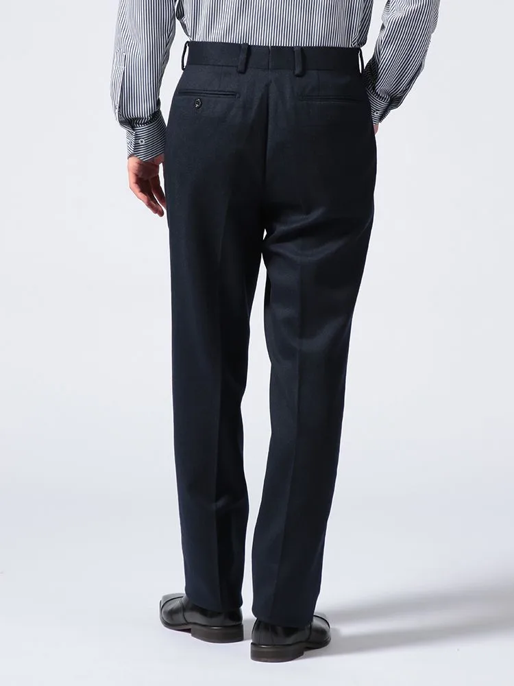 秋冬シーズンにぴったりな起毛感のあるウールフランネルを使用した、ノータック仕上げのスラックス。