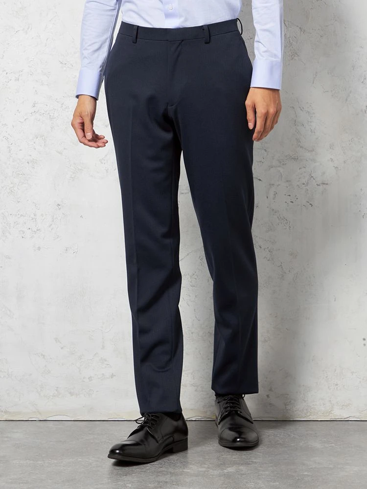 パンツの腰回りに生地の折り込みがなく、スッキリとしたシルエットを実現します。シンプルで洗練された印象を与え、すっきりとした着こなしが可能です。