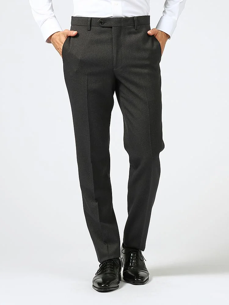【ストレッチ】パンツノータックグレーグレンチェックTRANSCONTINENTS秋冬