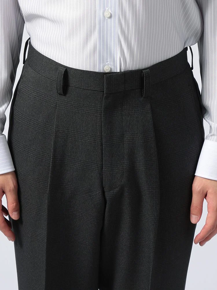 着こなしのさりげないアクセントとなるグレンチェック柄スラックスです。