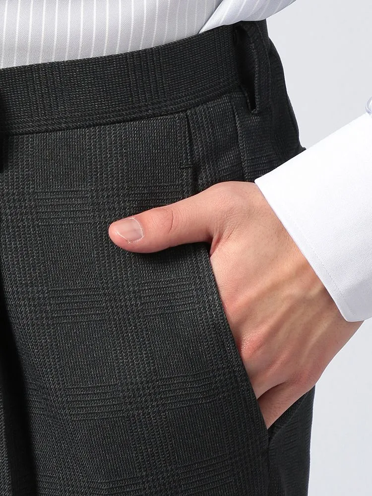 【ウォッシャブル】パンツノータックファイテンコラボスラックス千鳥格子PHITEN秋冬