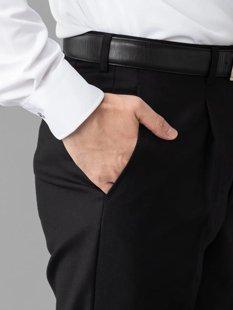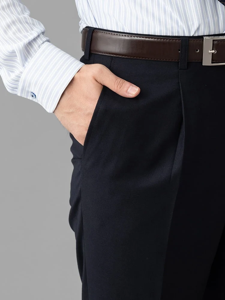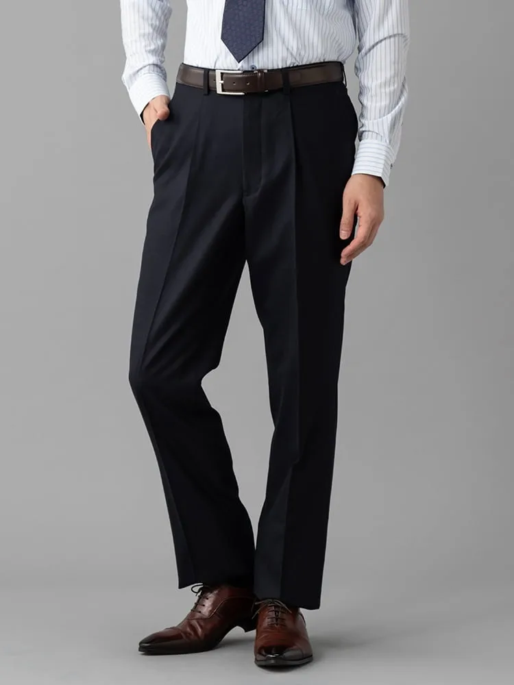 ビジネスからフォーマルシーンまで幅広く活躍するカラーのスラックスです。腰まわりにゆとりをプラスするワンタックデザインと伸縮性の良いストレッチが快適な穿き心地を叶える1本。トップスを選ばないベーシックなアイテムはスペア用としてワードロープに備えておくと安心です。