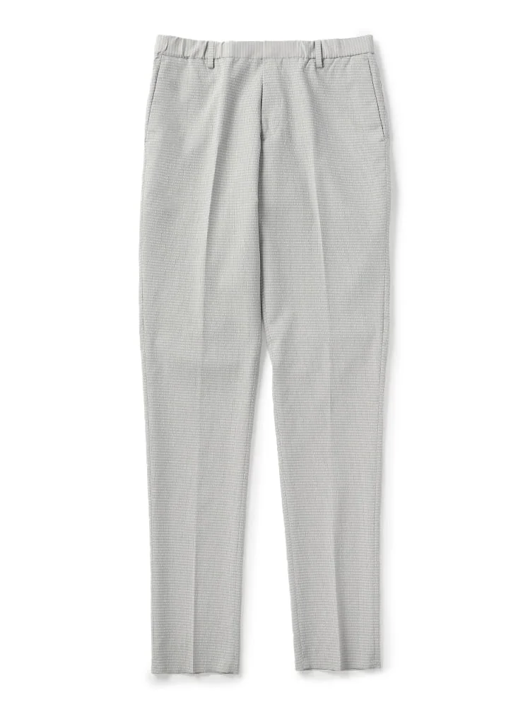 リラックス感ときちんと感を兼備したカジュアルパンツです。 ゴムウエストで快適なはき心地ながら、スリムなシルエットでスマートな仕上がりを演出。 着回しの効くプレーンなデザインでとライトな生地感で、デイリーに活躍する一本。