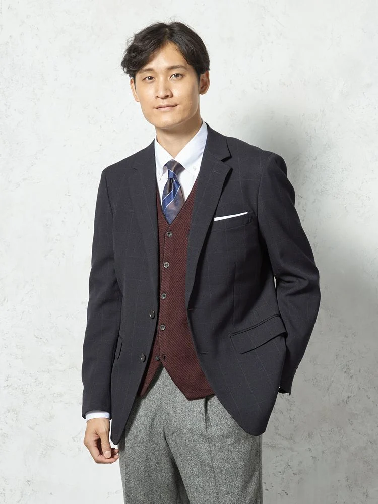切り込みが1本のセンターベントデザインです。細身でスッキリとしたシルエットが特徴で、快適な着心地を提供します