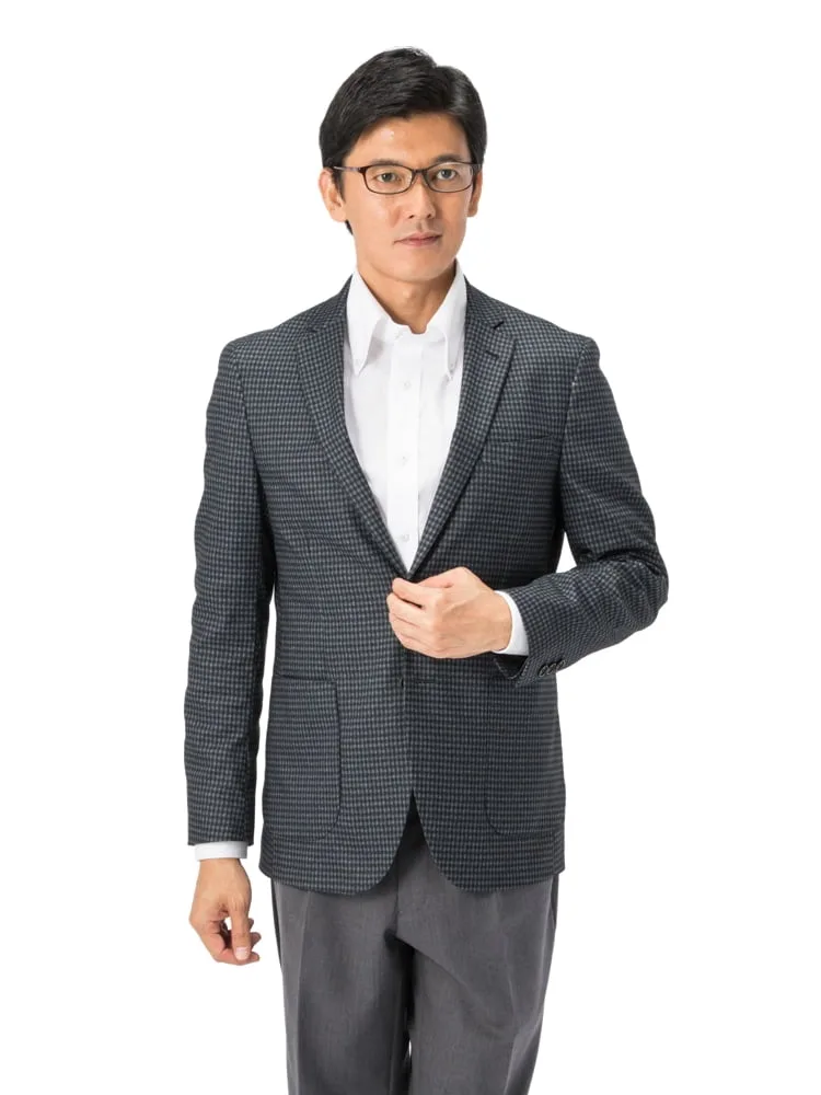【i-Jacket-アイジャケット-】ジャケット2つボタンウォッシャブルリサイクルニット素材チェック秋冬