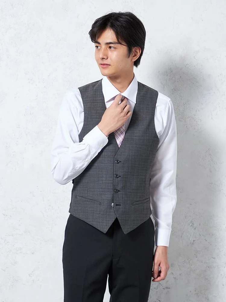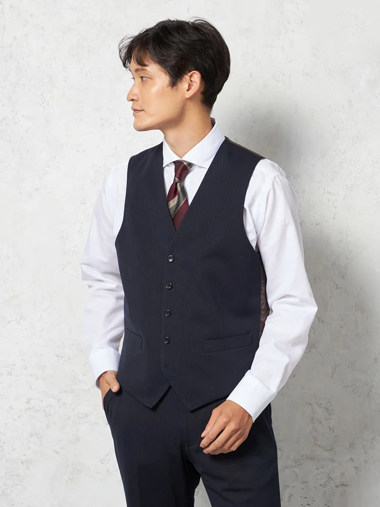 定番のスーツと合わせればスリーピースとして着用することができ、裏面を使用すれば着回しや単品としてもご着用いただけます。
