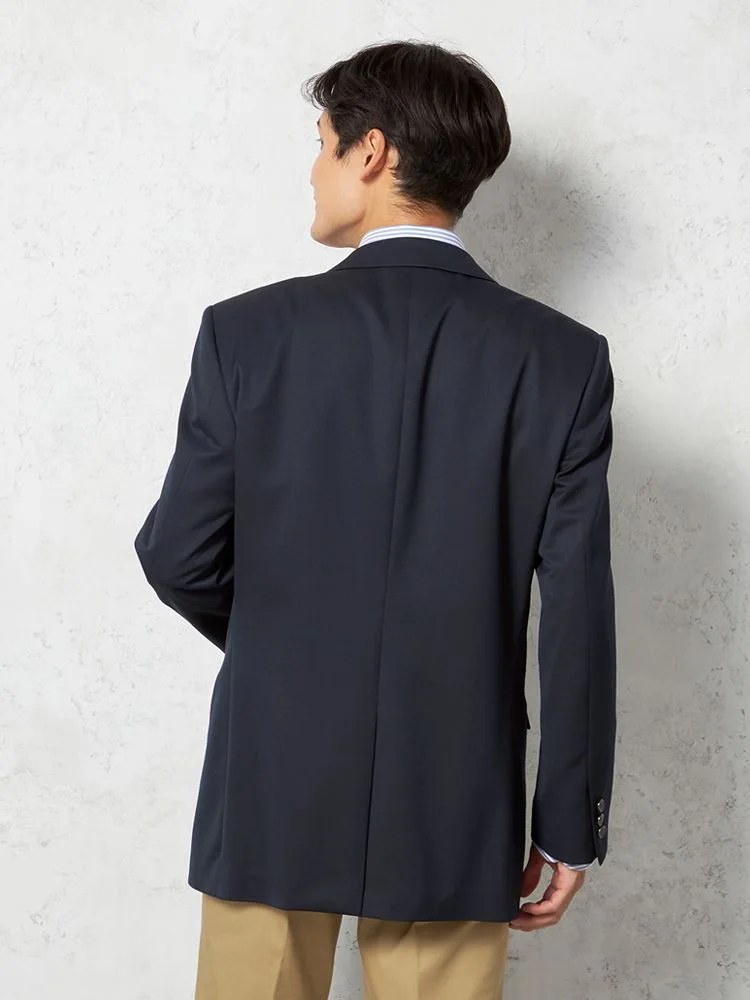 【ウール混】ジャケット 2つボタン 紺ブレザー 背抜き 無地 リージェントハウス 通年【定番】