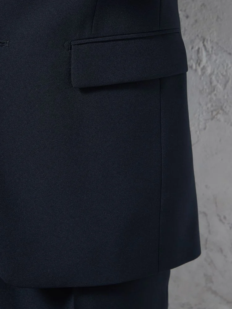 切り込みが1本のセンターベントデザインです。細身でスッキリとしたシルエットが特徴で、快適な着心地を提供します