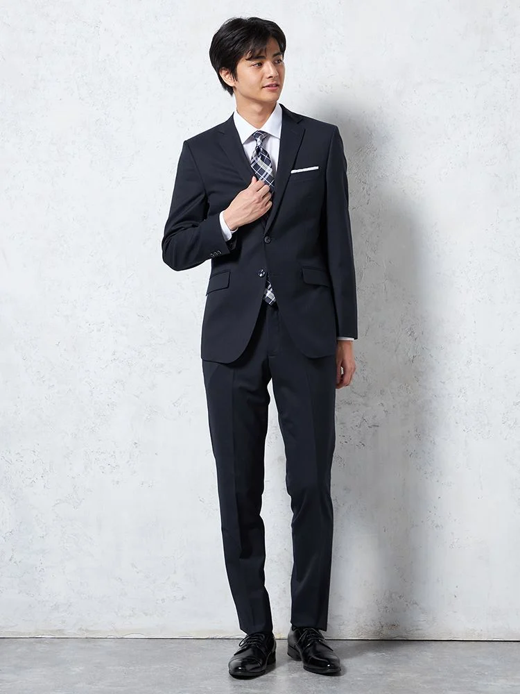 【即納】スーツ2つボタン【WEB限定】4WAYストレッチシャドウストライプネイビー通年