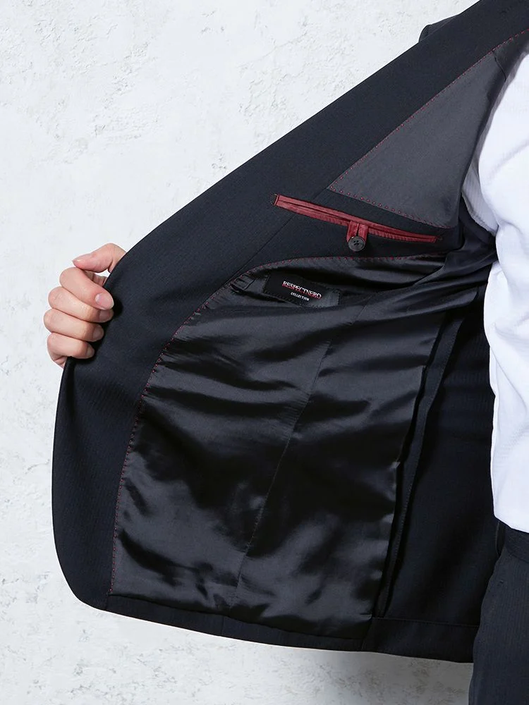 通常のスーツよりやや細めに設計されている。