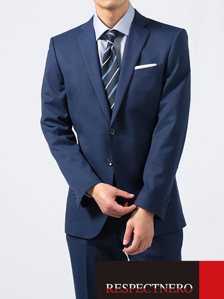 【E体】スーツ2つボタンネイビーシャドウストライプRESPECTNERO通年【定番】