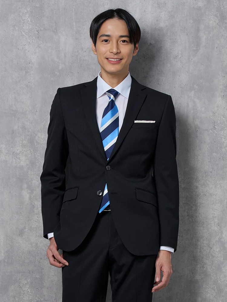 【2WAYストレッチ】2つボタンスーツブラックシャドウストライプ【ベスト(別売)有】RESPECTNERO通年【定番】