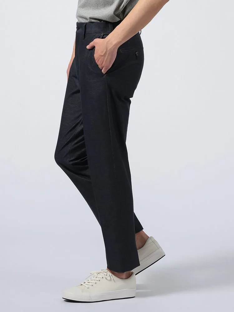 センタープレス入りでカジュアルになりすぎず、大人の休日コーディネートなど幅広い場面で活躍する一枚です。