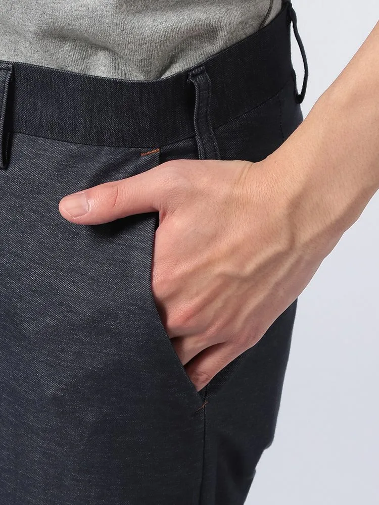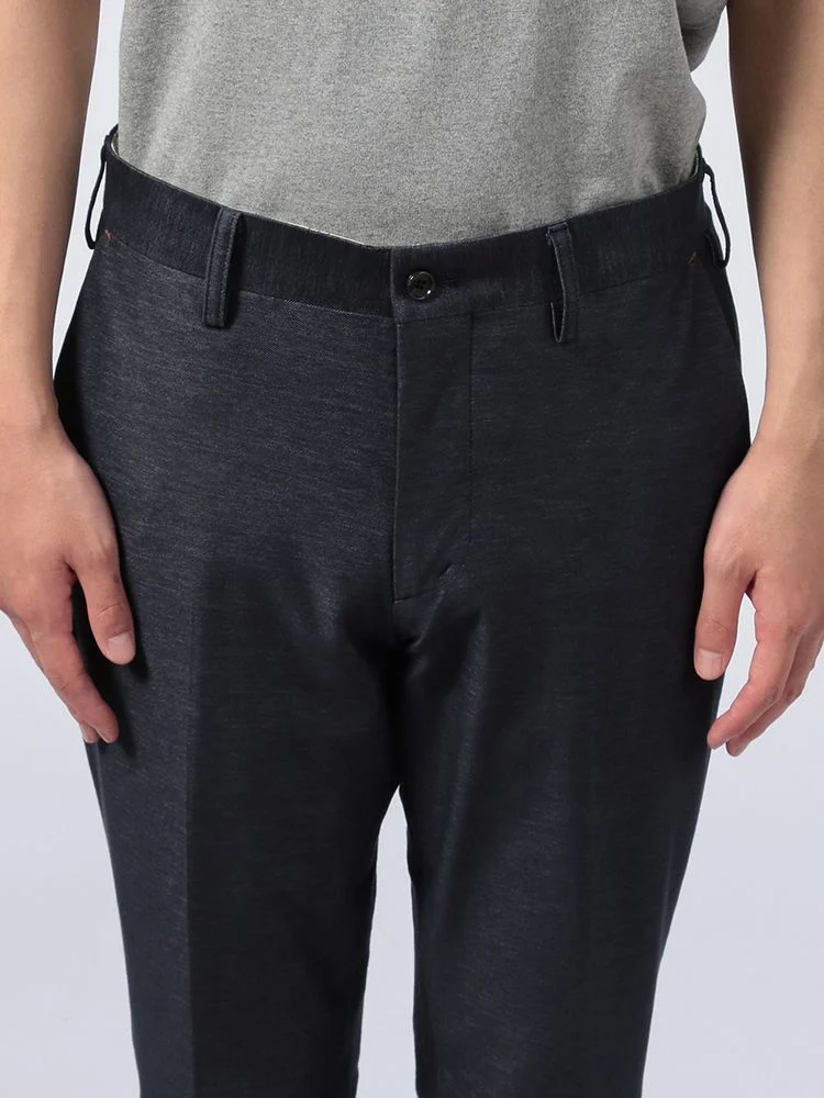 パンツの腰回りに生地の折り込みがなく、スッキリとしたシルエットを実現します。シンプルで洗練された印象を与え、すっきりとした着こなしが可能です。