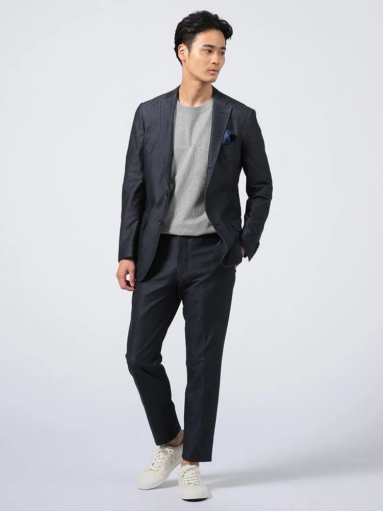 デニムで有名なブランド、EDWIN(エドウィン)のデニム調のセットアップパンツ。