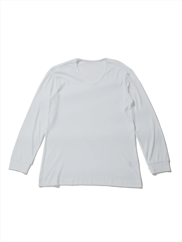 【保温】アンダーウェア ヒートインナー 長袖 Vネック 白無地 秋冬