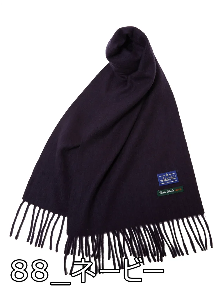 【マフラー】シルケット ウール マフラー 無地 秋冬(ネイビー)