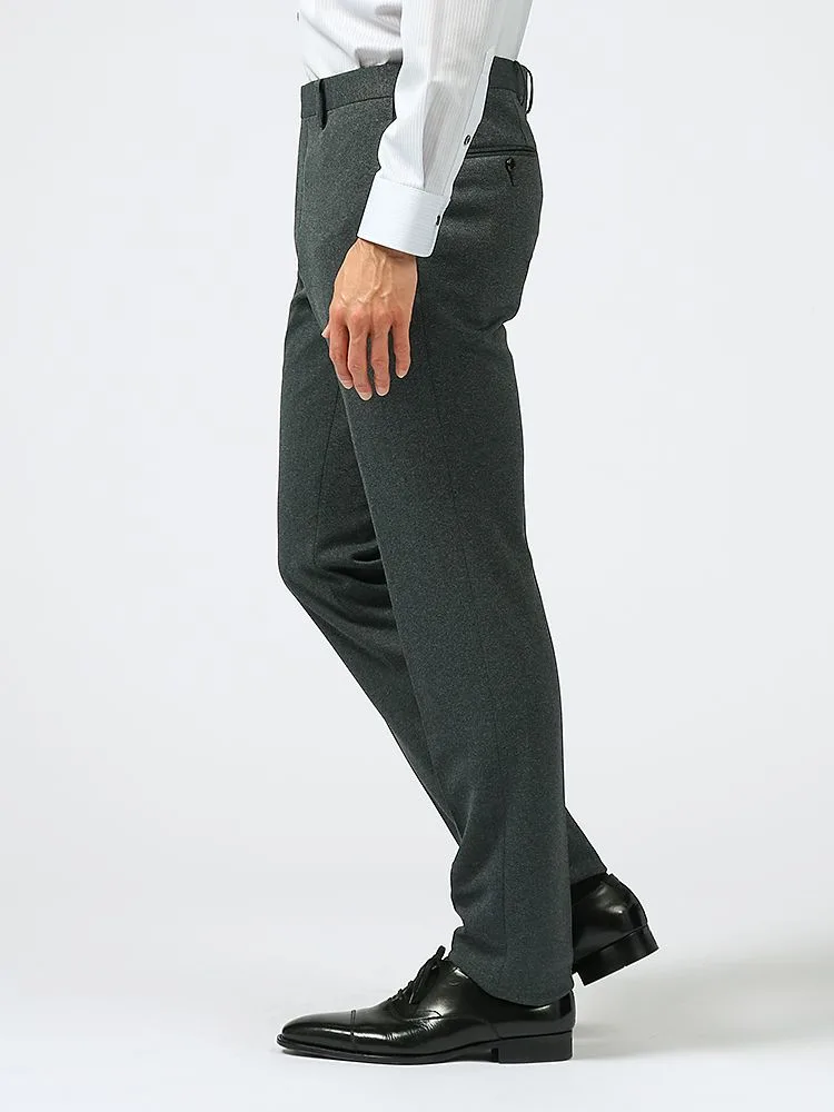 着こなしやすいカルゼニット生地のスラックスパンツ。