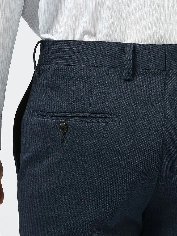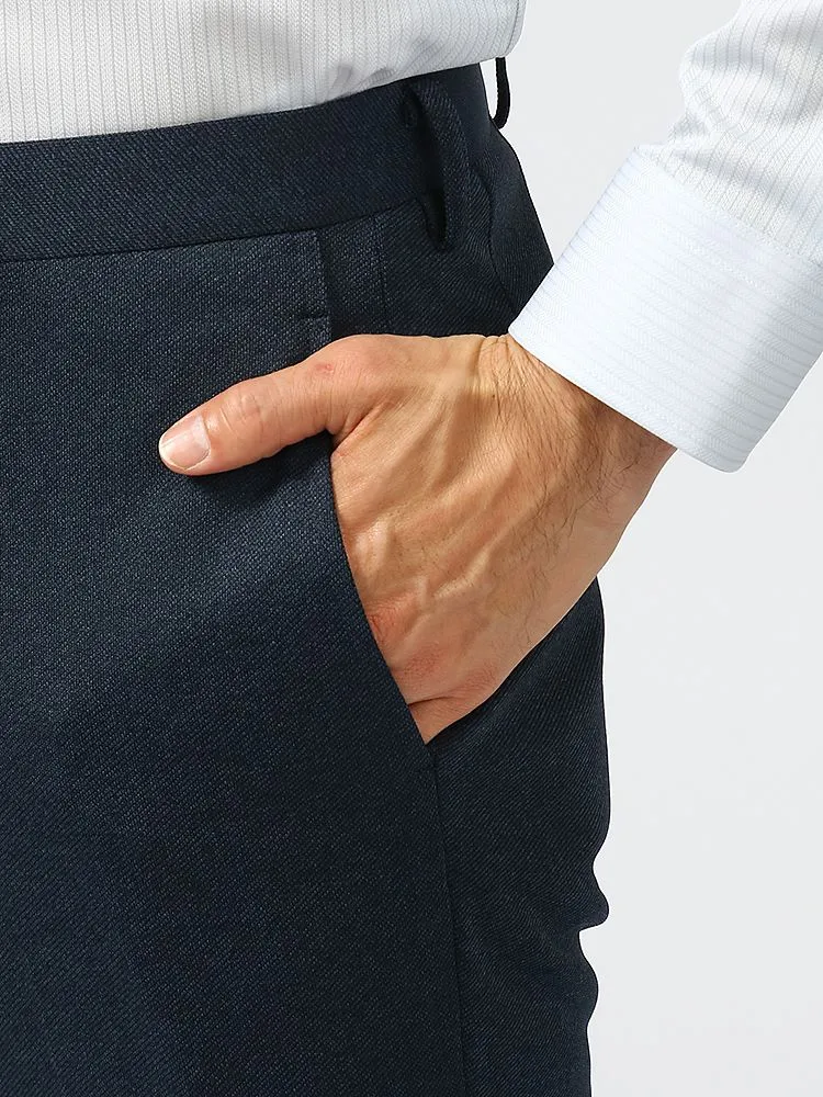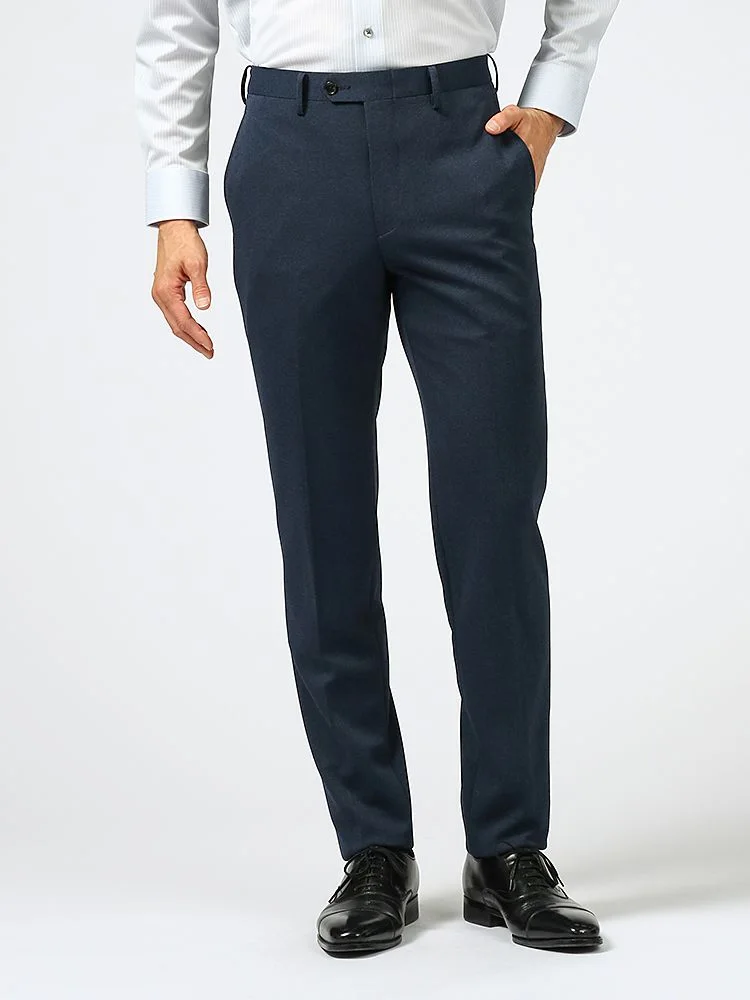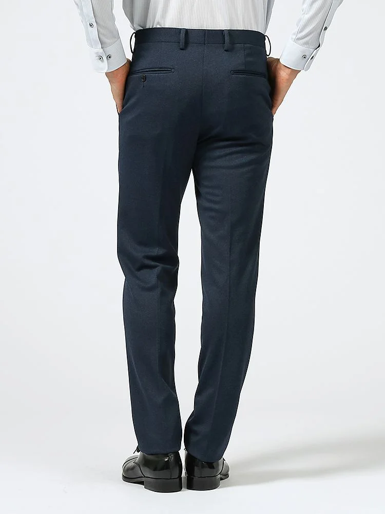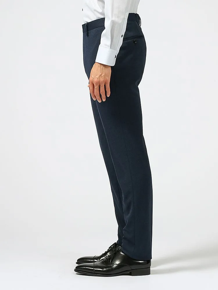 【ストレッチ】パンツ ノータック カルゼニット スラックス ノータック 無地 TRANS CONTINENTS 秋冬(ネイビー)