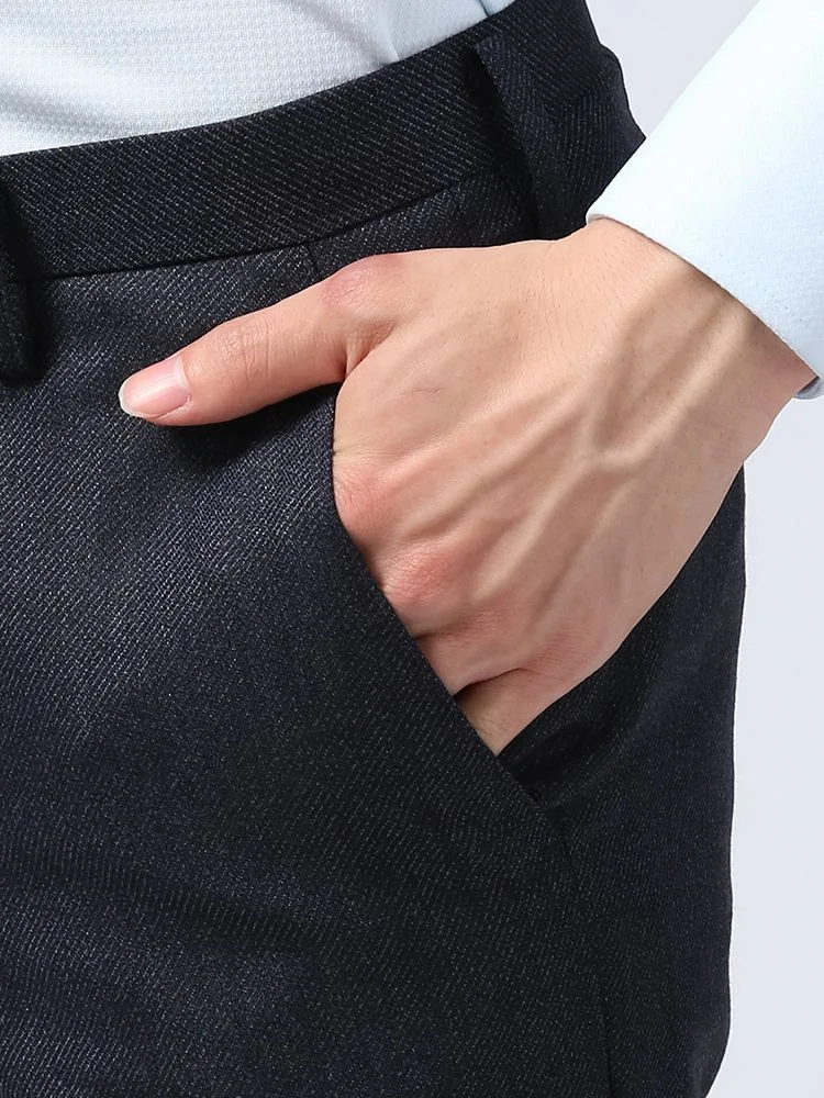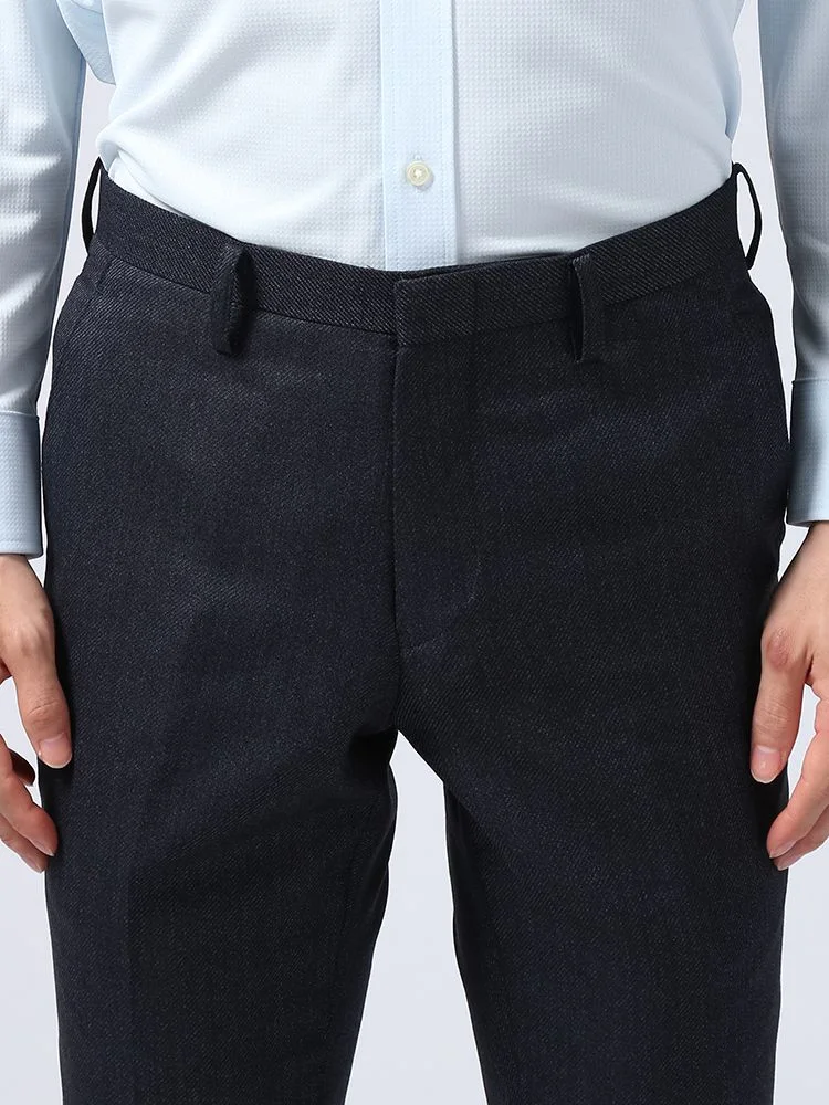 【ウォッシャブル】パンツスラックスノータックスリム織柄無地nero