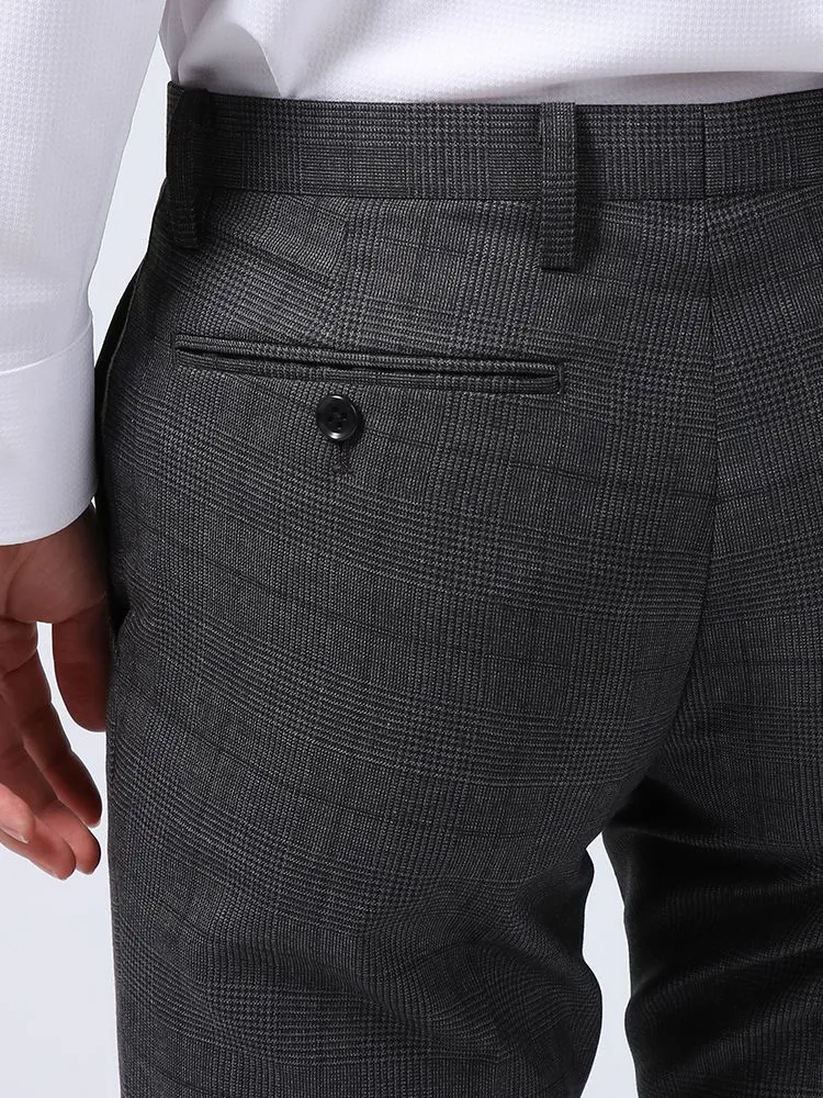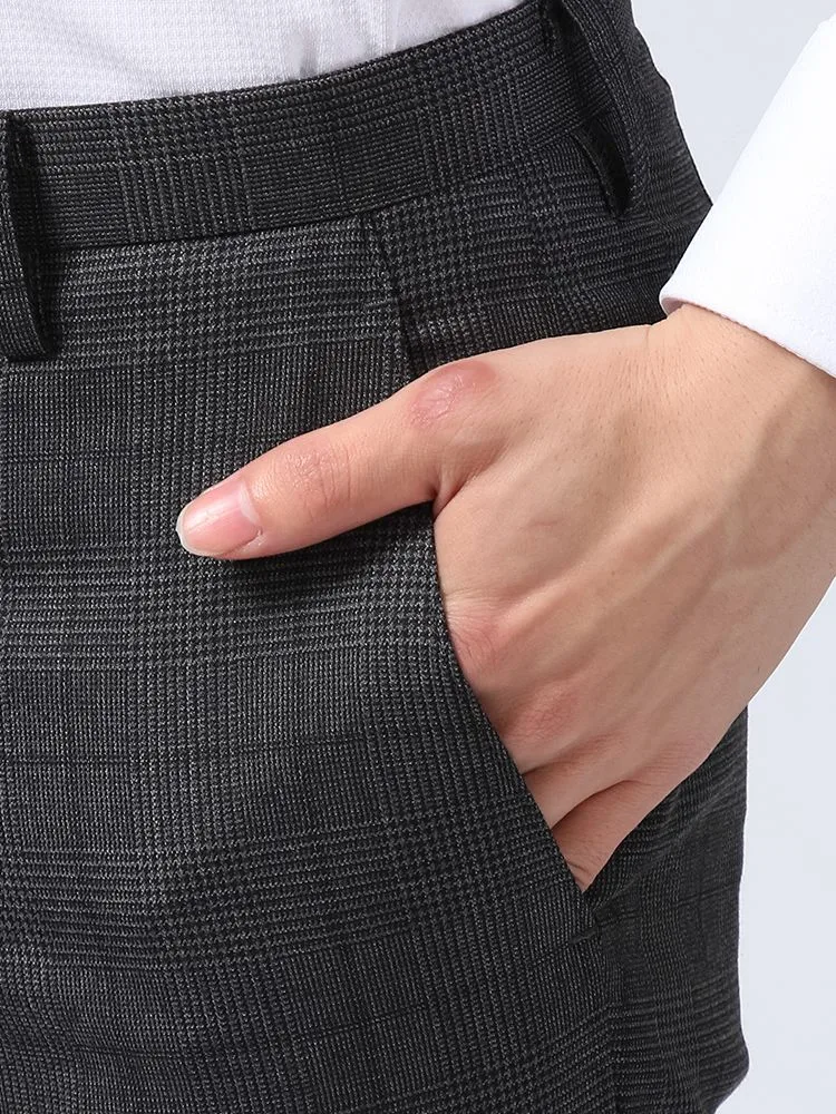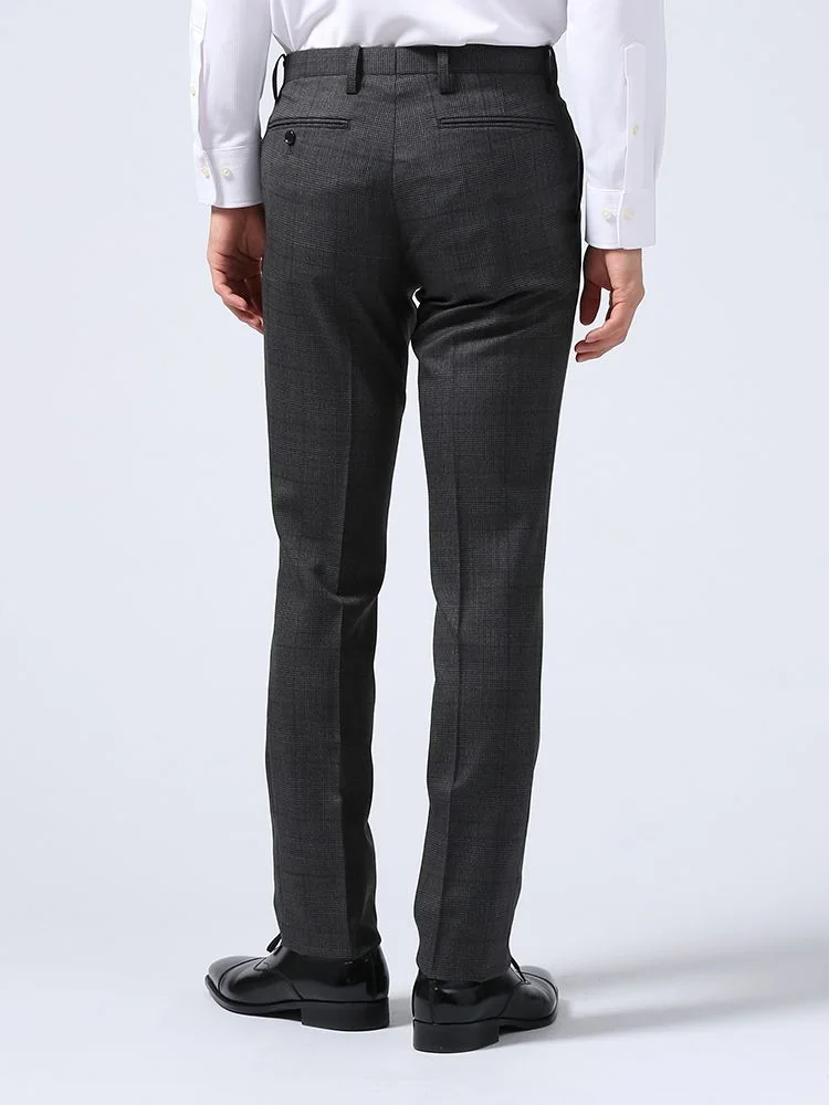 【ウォッシャブル】パンツスラックスノータックスリムマイクロチェックnero