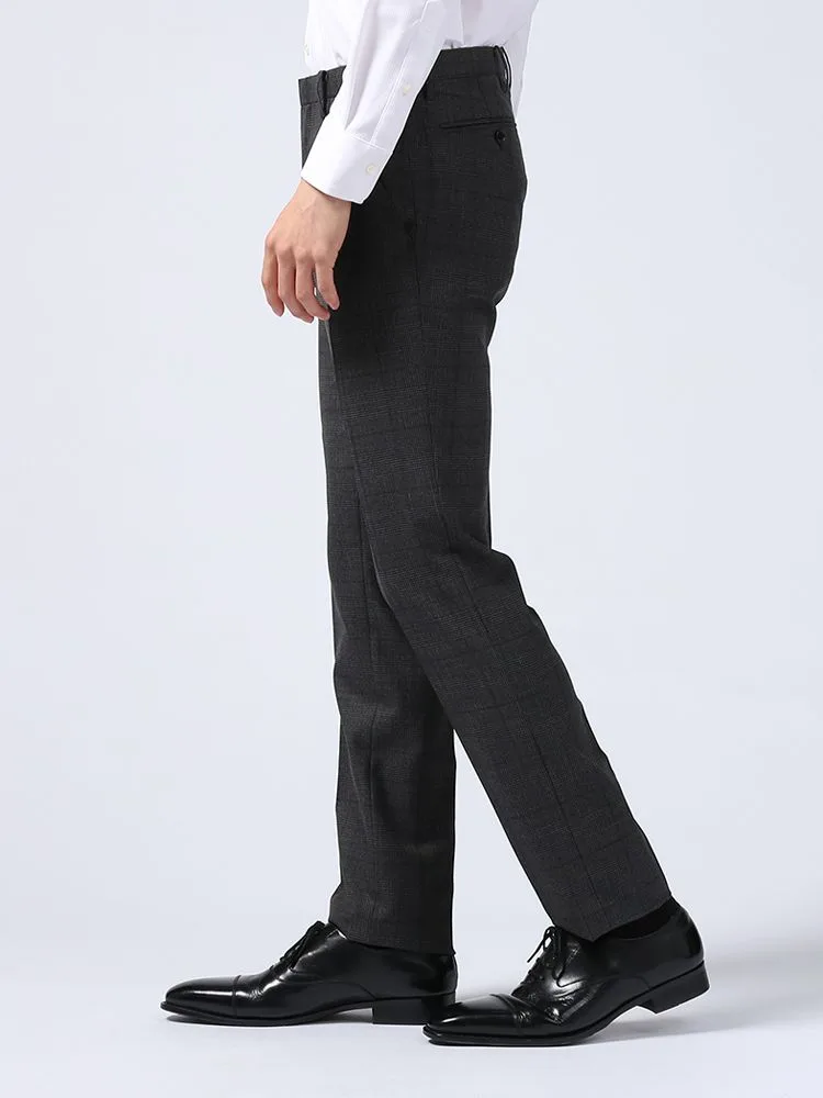 クラシカルなグレンチェック柄がスタイリングに品よくきちんと感をプラスするノータックパンツです。