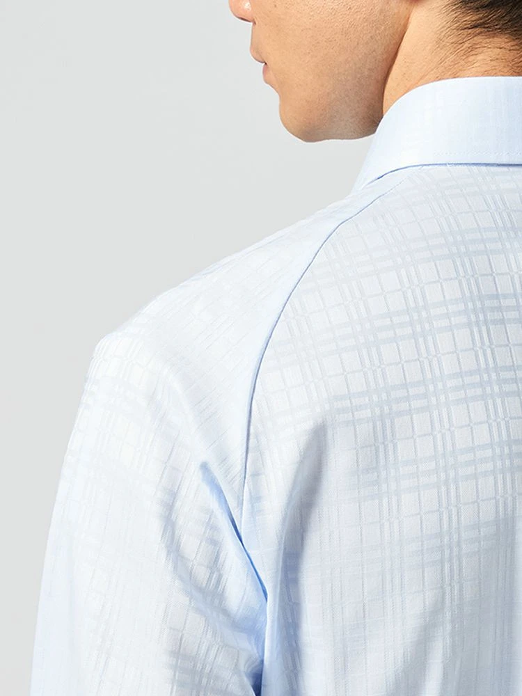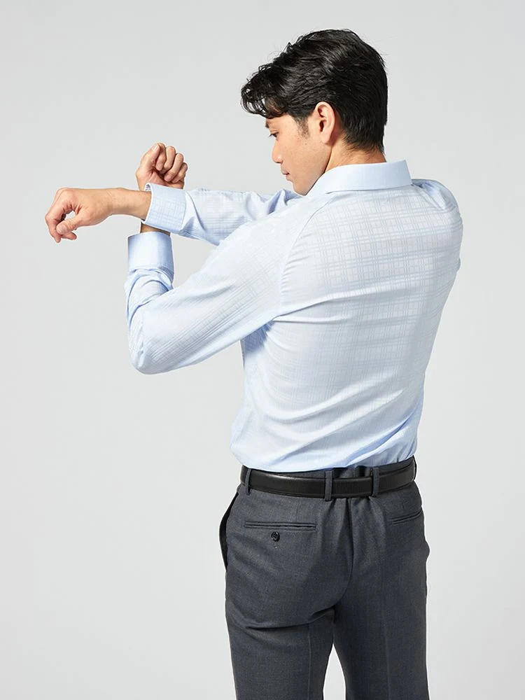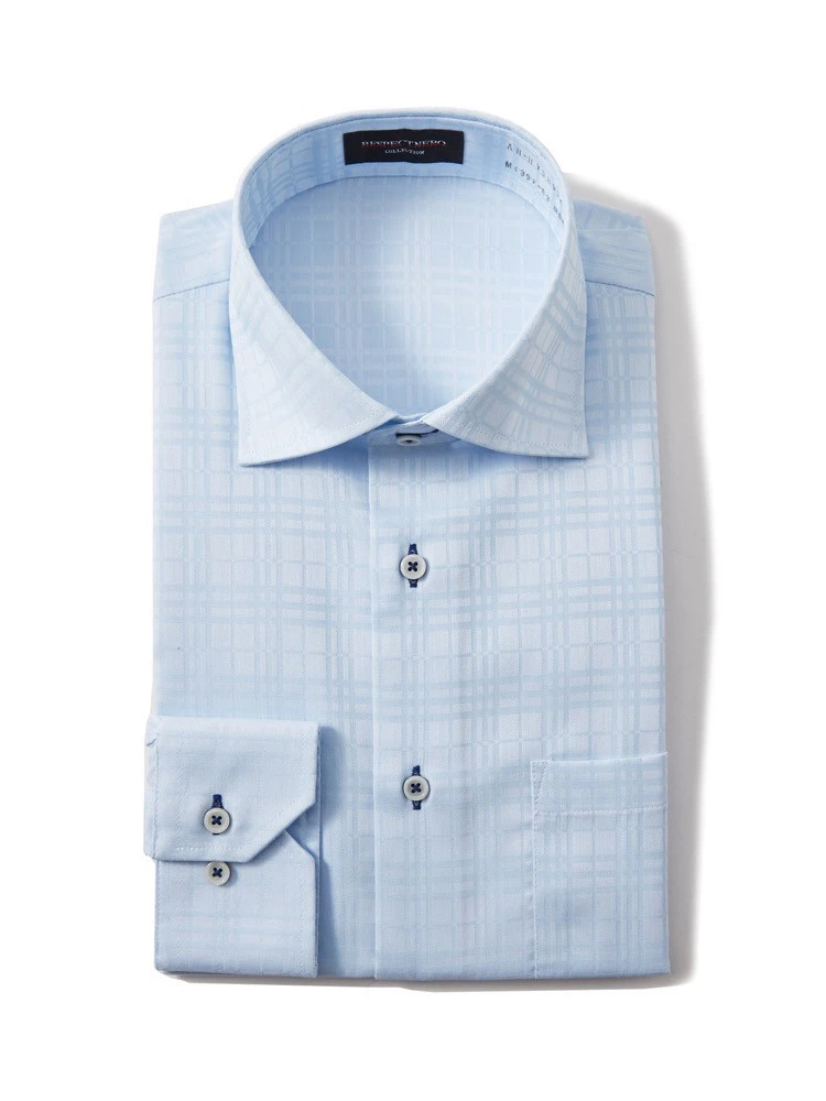 【即納】WEB限定【完全ノーアイロン】長袖アイシャツセミワイドストレッチミニチェック柄i-shirt通年