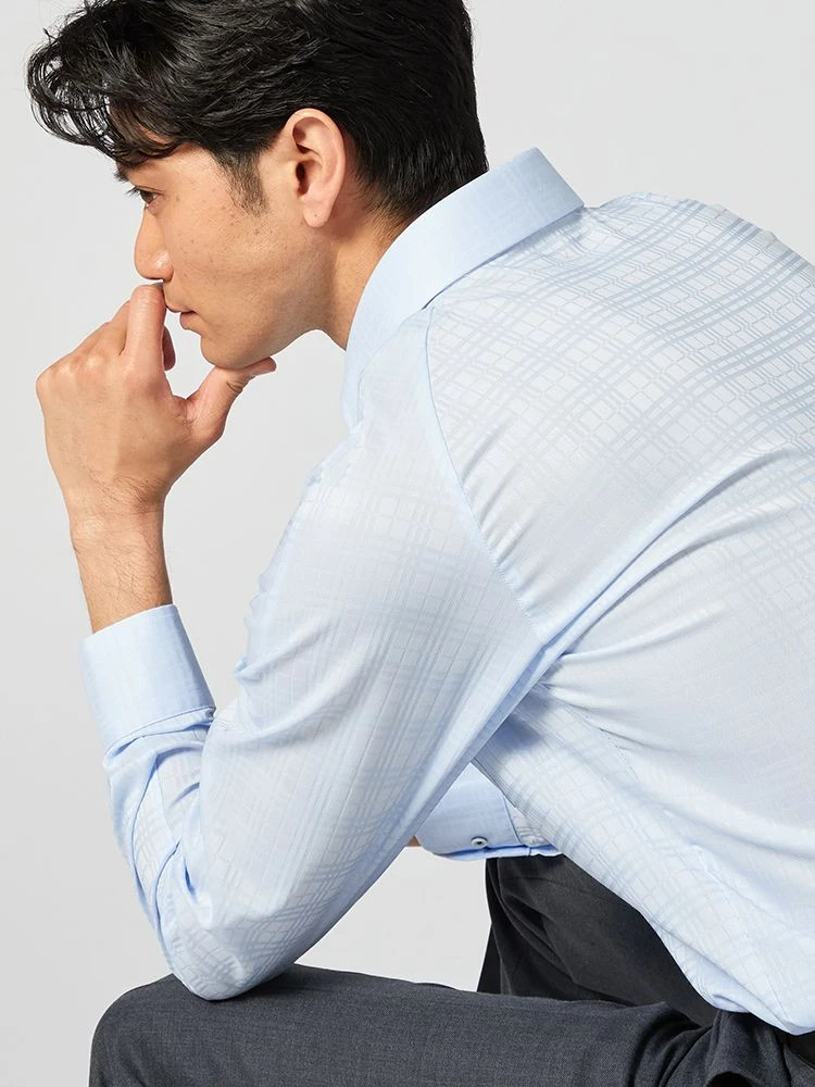 形態安定機能が施されており、洗濯後もシワになりにくく、常にきれいなシルエットを保てます。