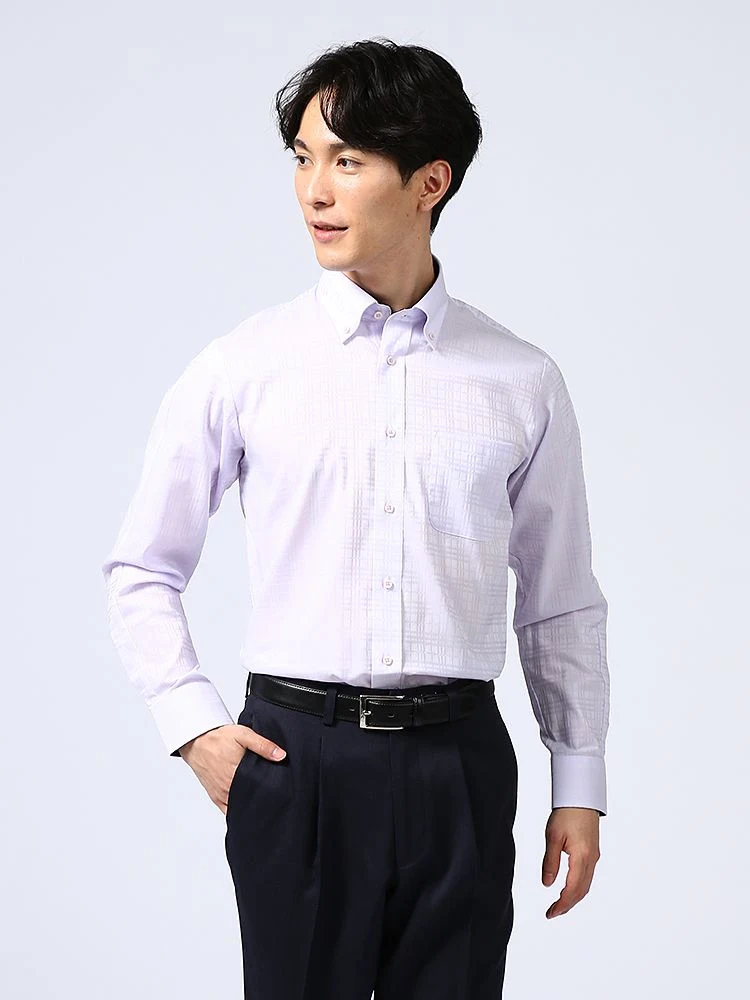 【形態安定】アイシャツ長袖ワイシャツボタンダウン織柄無地i-shirt通年