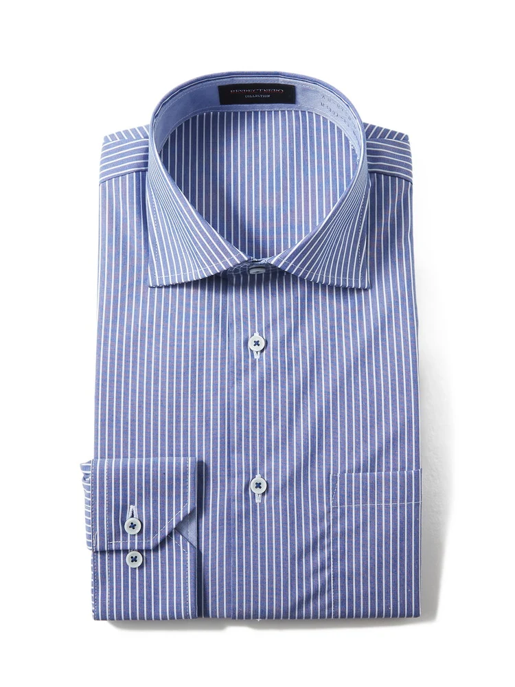 【形態安定】長袖ワイシャツ綿100%ワイドカラーストライプSTOVEL&MASON通年